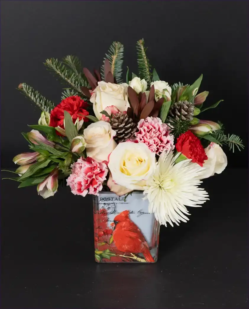 This is a preserved keepsake arrangement—enjoy its festive charm year after year!